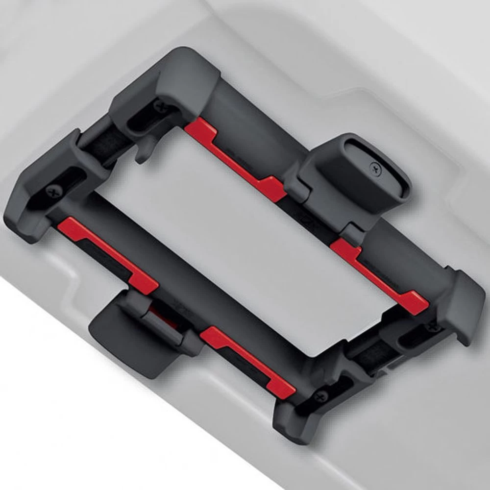 Breite einmalig auf Gepäckträger einstellen. Zubehör aufsetzen – Klip umlegen – fest !