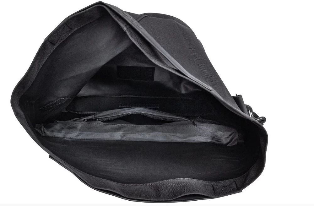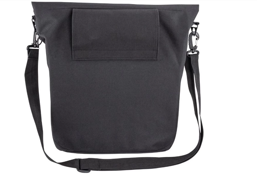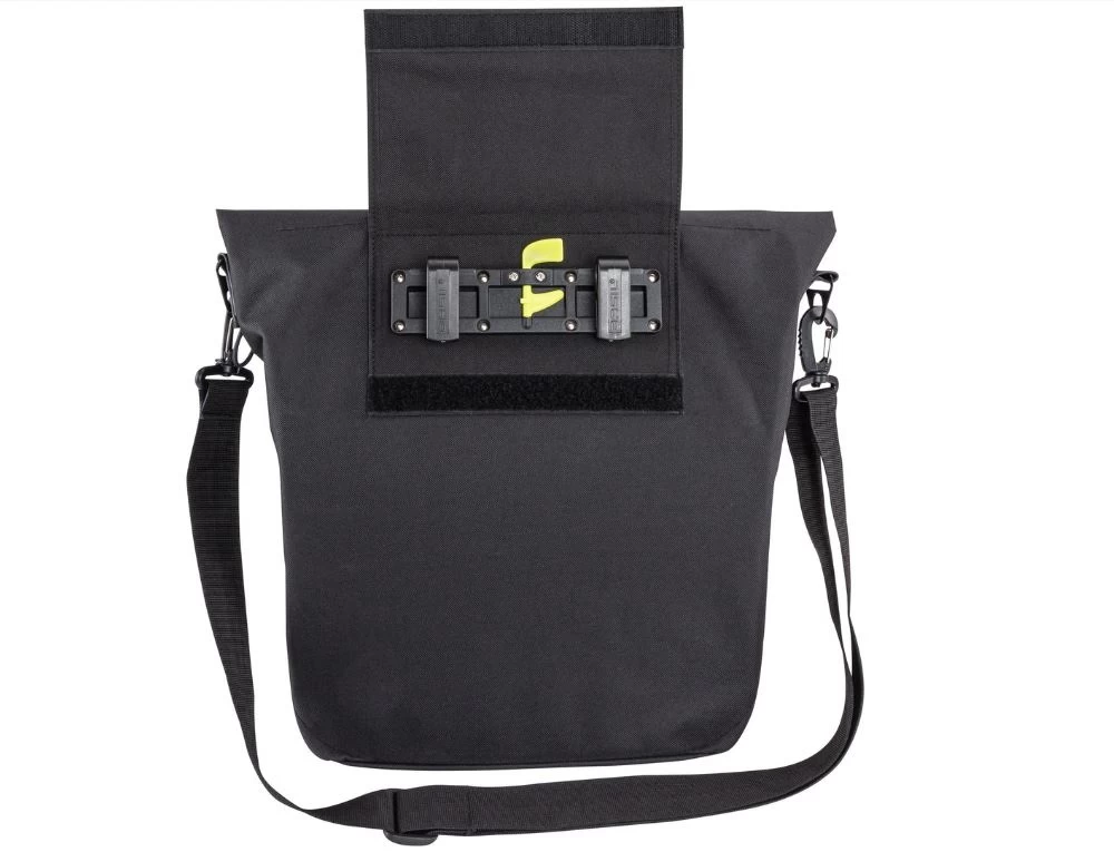 SB-verpackt, Faltverschluß mit Magnet, wasserabweisend, Innenfach mit Reißverschluß, Griffe aus veganem Leder, abnehmbarer Schultergurt, mittels Hook-On-System am HR-Gepäckträger zu montieren, Befestigungsmöglichkeit für LED, Reflexapplikationen