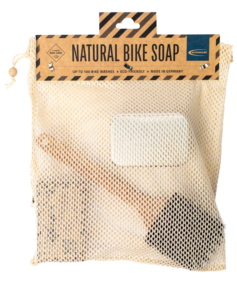 Natural Bike Soap: hervorragende Reinigungswirkung, lange Nutzungsdauer, ausschließlich natürliche Inhaltsstoffe, Made in Germany, dermatologisch getestet, vegan, mikroplastikfrei, schonend für Lacke und Reifen, zu 100% biologisch abbaubar nach OECD.