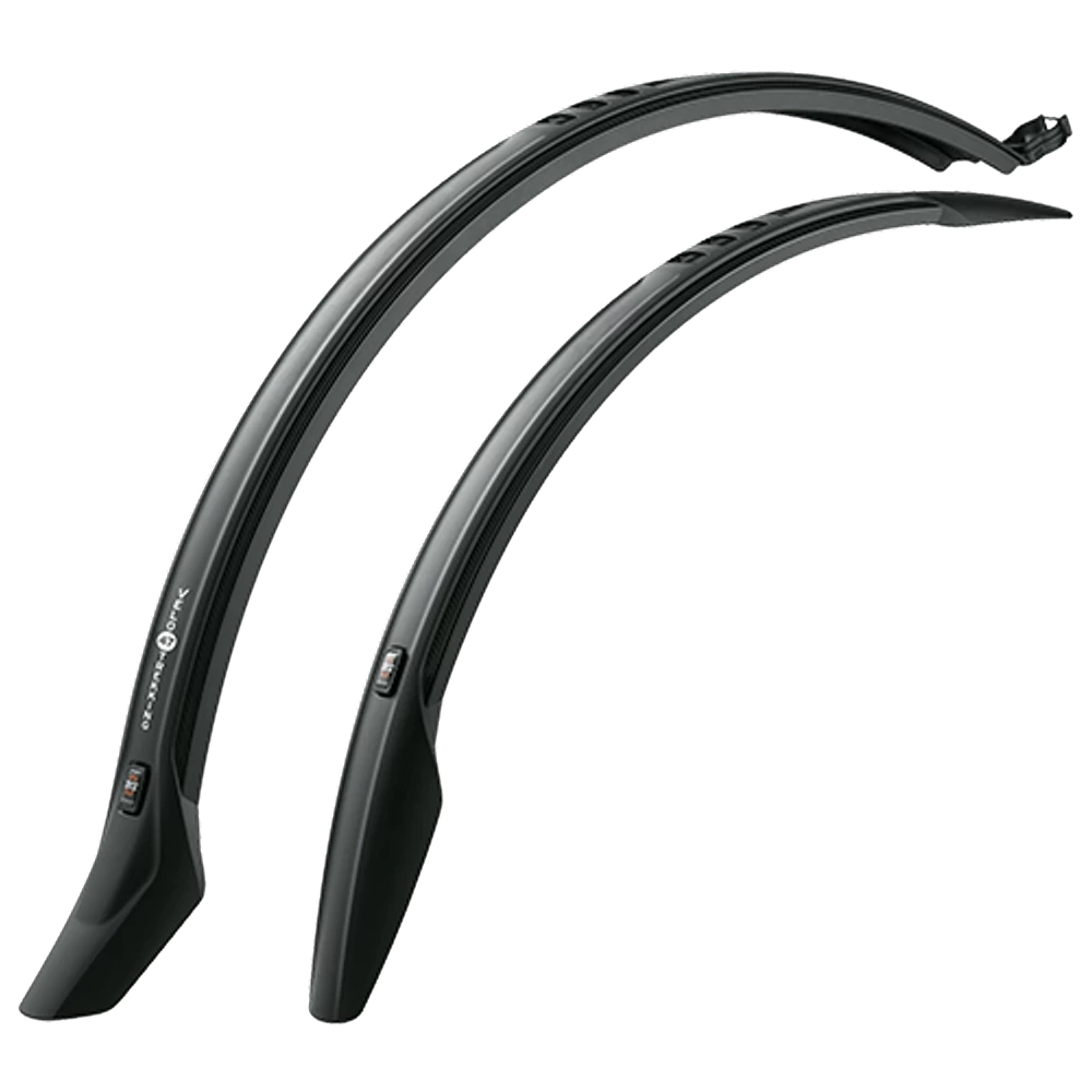 Bestehend aus schlagfestem, schwarzem Hochleistungskunststoff mit integriertem SKS-Logo, werten die Schutzbleche das Fahrrad auch optisch auf.