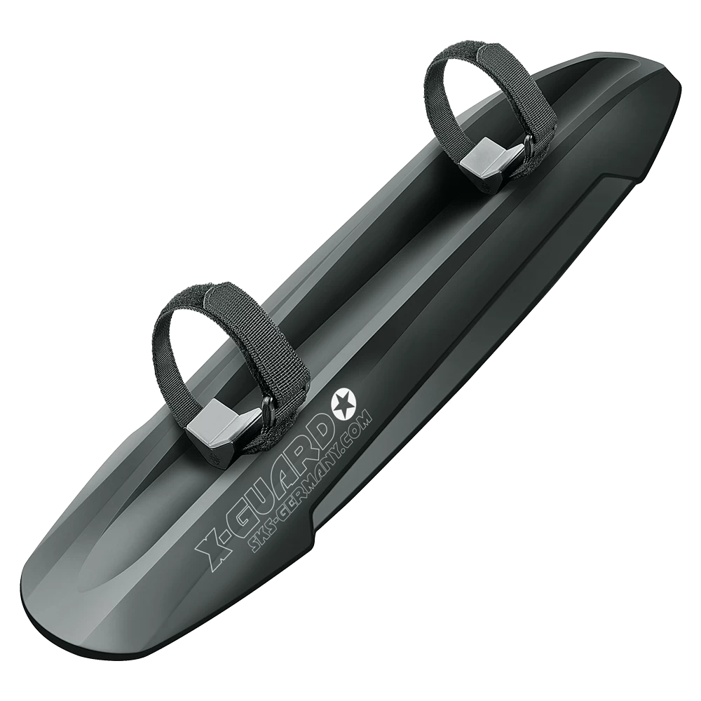 Der X-GUARD aus schlagfestem Hochleistungskunststoff ist ein universelles Schutzblech für jede Laufradgröße, das mit Hilfe von zwei Straps am Unterrohr befestigt wird. Vor allem Fat Bikes und Rädern mit Plus-Bereifung bietet der Mudguard einen absoluten Rundum-Schlammschutz.