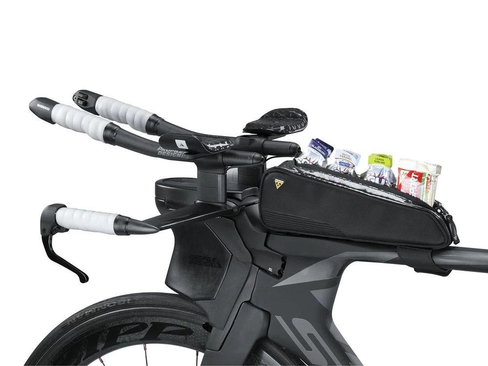Stylische und aerodynamische Oberrohrtasche für schnellen Zugriff auf Energieriegel, Smartphone, Geldbörse, Werkzeug oder weiteres Zubehör, das stets griffbereit sein muss.
